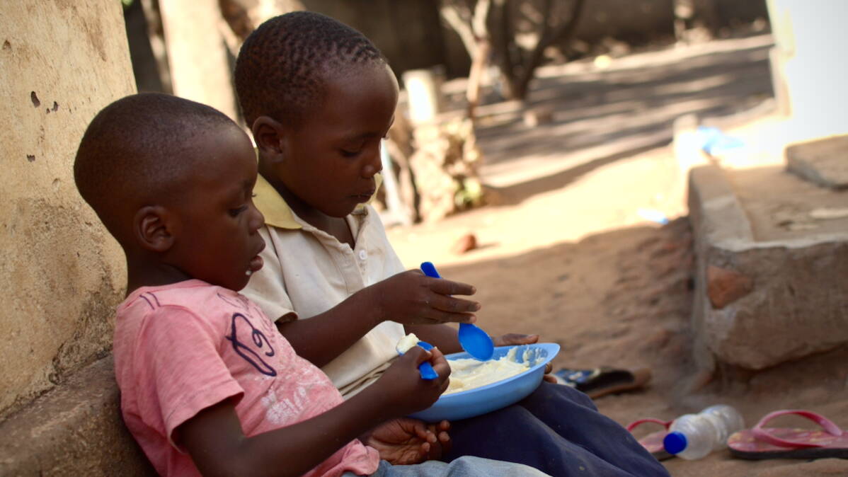 Children eating egg porridge (phala) ⎮ Visual: © GIZ
