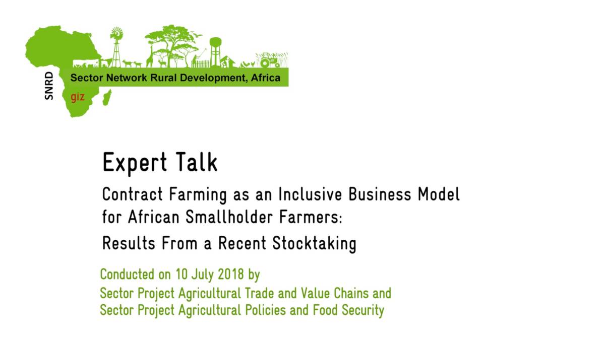 Broad sharing and dissemination of information and knowledge are known to be key drivers of impact in development cooperation. GIZ views Contract Farming, in particular, as an important opportunity to raise incomes of smallholders and entrepreneurs along the rural value chains, making it a promising component for many rural development efforts.