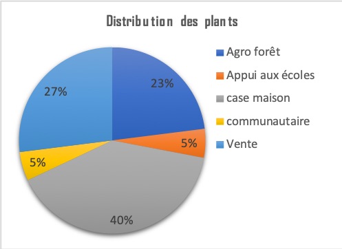 Initially, from the approach, the seedlings produced were intended to be planted in agro-forests and behind and around huts. This explains the high representation of the purpose of the plants produced so far (40%). But today an opportunity to sell seedlings produced in the nursery has been added to the process. Seed producers were directly connected with various institutions or groups directly interested in reforestation activities. Production is thus related to market demand and the specific needs of different groups of women.