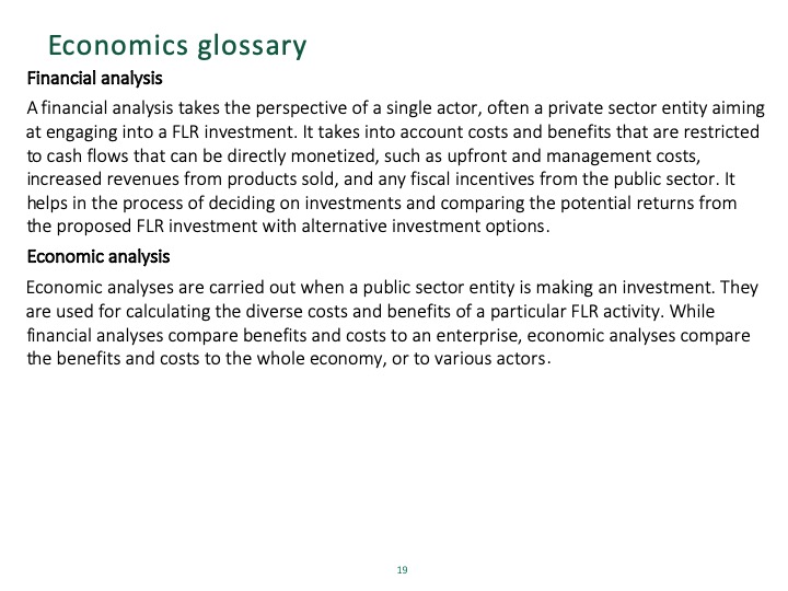 What are costs and benefits of the various FLR options in the landscape? How can one convince stakeholders of the positive return of their investment in FLR measures? How can you calculate the ROI for the different FLR interventions in a particular landscape and improve project implementation from an economic point of view?