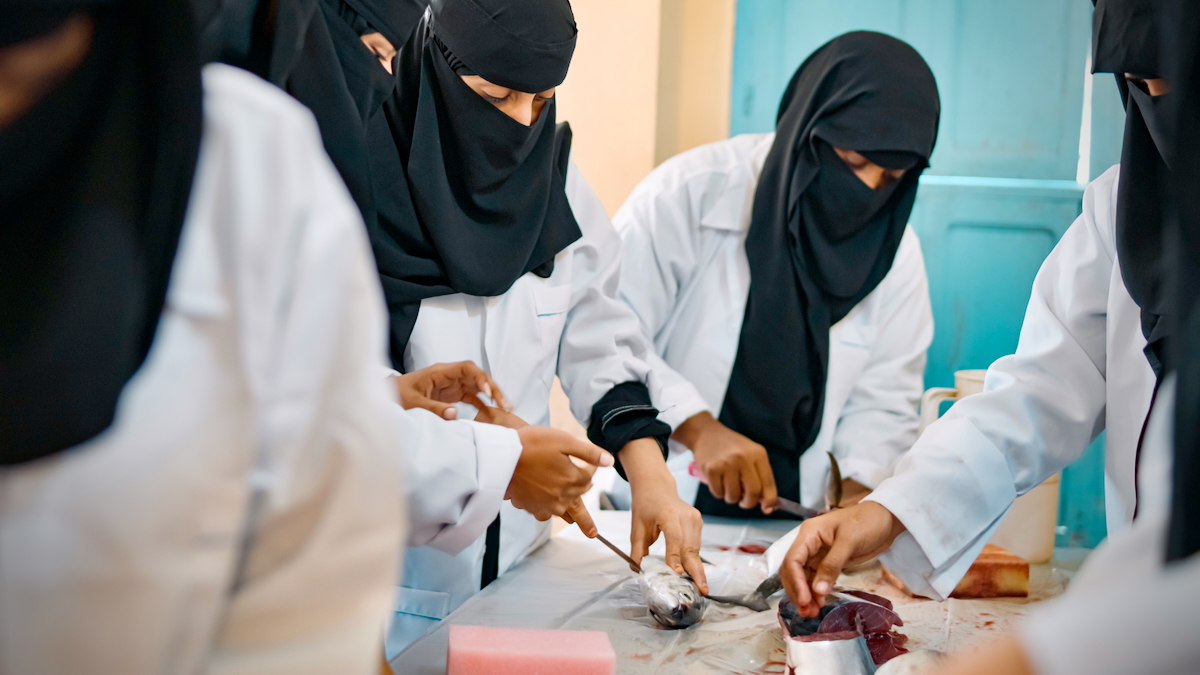 Members of the newly established women’s section of Al Mukalla Fisheries association learning how to handle the fish for further preservation as part of a training on fish processing methods to economically empower women in coastal households ⎮ Visual: © GIZ
