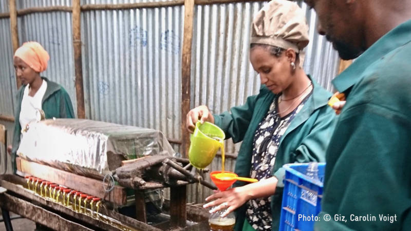 Processing of oil for human consumption — Field trip to Dano at the “Green Innovation Project” in the West Shoa Zone, Ethiopia on agribusiness and job creation for youth