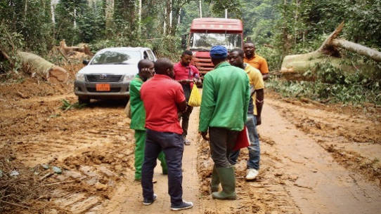 “Wood exploitation is done in turns. Currently they are working in Block I”, explains Rodrigue Onana, a vigorous man who works for the council forest management unit. He stands on a muddy road next to a few trunks disposed and ready to be onloaded. The noise from the chainsaws and trucks almost drowns out his voice.