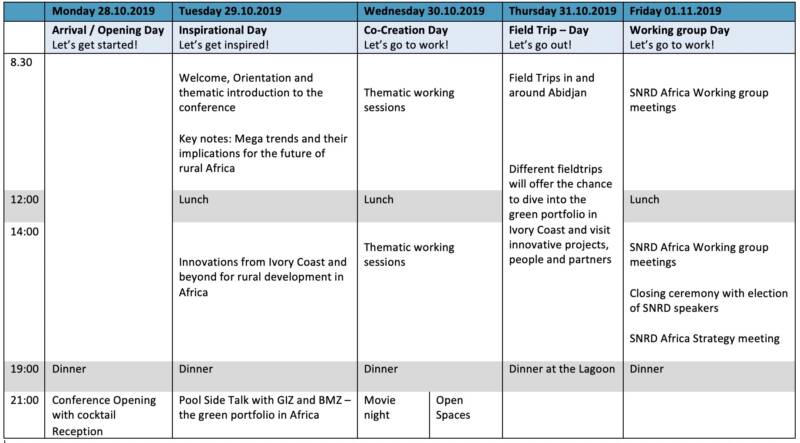 The 2019 SNRD Africa conference does not only show innovations, it’ll also give you the chance to try, test and spread them across rural Africa, back to your projects and countries. However, to make it a successful event, we need your help! We need your ideas for innovations, innovators and start-ups from your project and working environment. Bring your best practices to Abidjan. Present your best innovative ideas and inspire others. Discuss how your approaches might work elsewhere and gather ideas of how others are tackling their challenges.