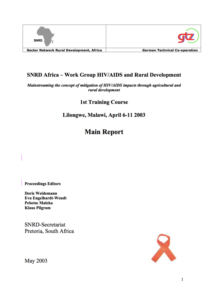 After two conceptually oriented workshops on the issue of ‘HIV/AIDS and agriculture and rural development’ held in Harare/Zimbabwe (2001) and Siavonga/Zambia (2002), SNRD Africa organised a first real training course for HIV/AIDS focal persons in ministries of agriculture and