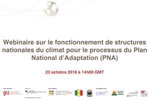 Fonctionnement de structures nationales du climat pour le processus du Plan National d’Adaptation — L’enregistrement du webinaire